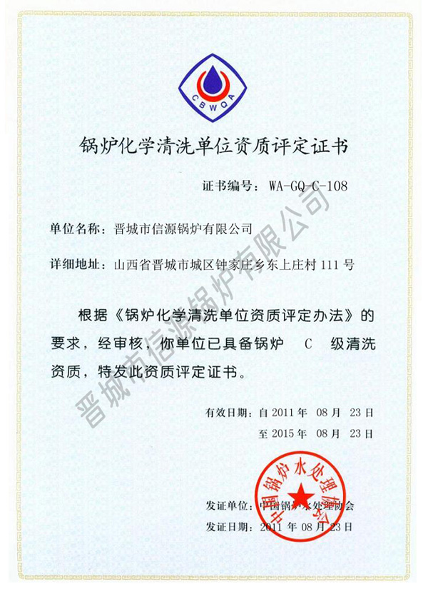 鍋爐化學(xué)清洗證